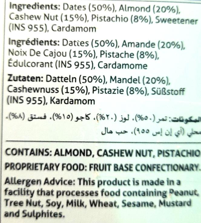 Bikaji Khajoor/khajur Dry fruit 250g. Allergy Advice - For allergens including cereals containing gluten see ingredients in bold.