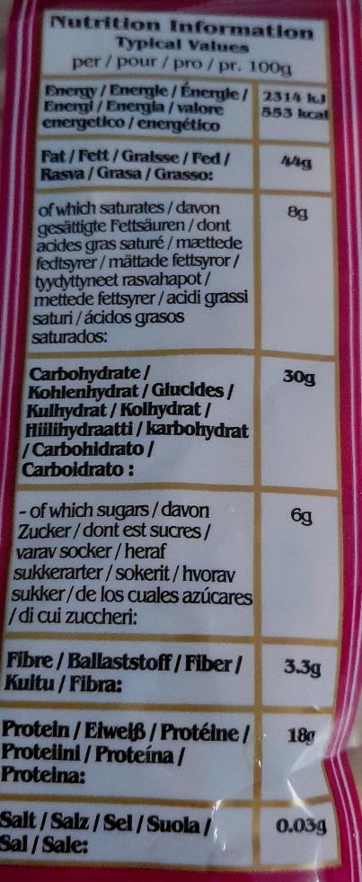 May contain traces of peanuts, nuts, sesame, soya, gluten, milk and mustard.