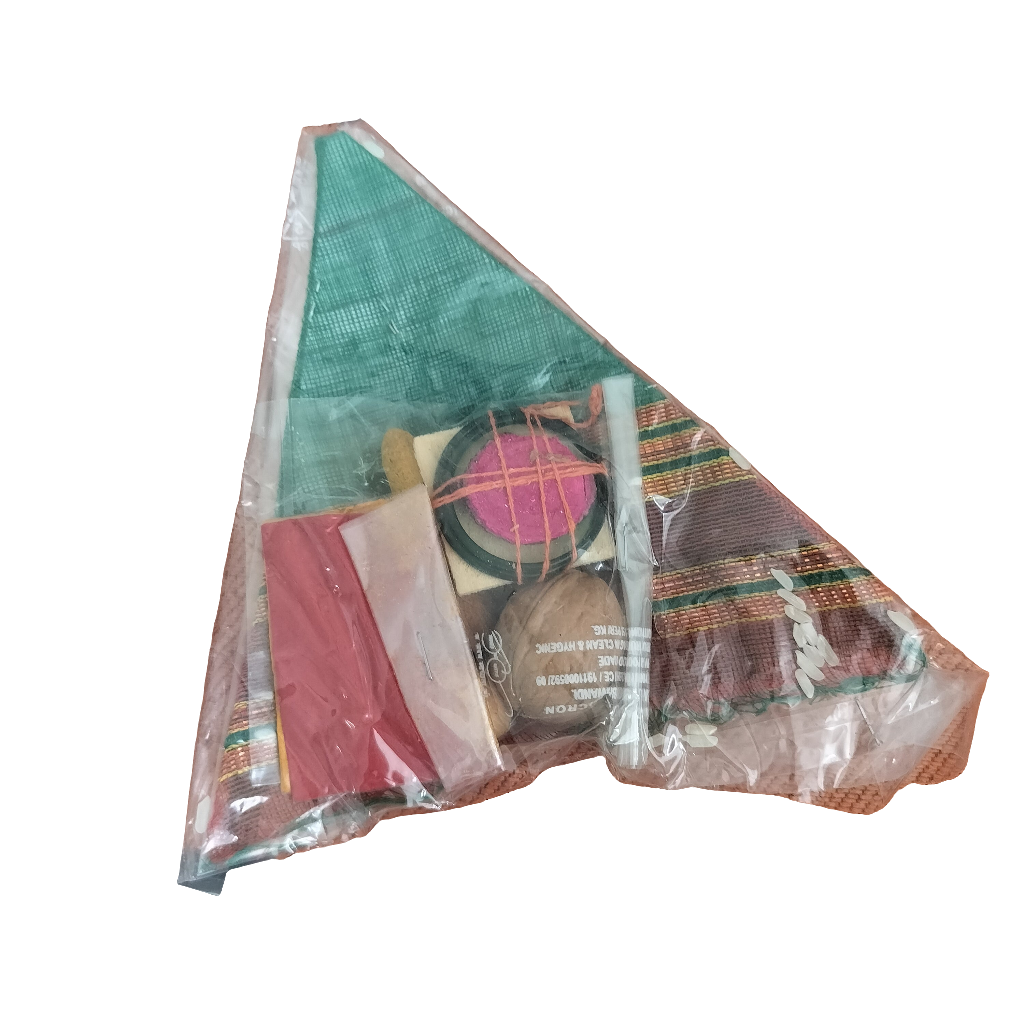• Mix of 5 dry fruits: Walnut (Akhrot), Almond (Badam), BetelNut (Supari), Turmeric (Haldi) and Dry Dates (Kharek). (Not included)